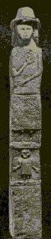 Прежде всего бросается в глаза трехярусность изваяния, отражающая трехярусность мира в представлении славян. В нижнем ярусе отображена Навь – нижний мир, оставивший свое имя в русском языке: навьяк – мертвец. В украинском языке навиженый – одержимый, т.е. находящийся под влиянием Нави. Однако Навь не царство зла - это смерть, которая предшествует жизни, как непроросшее зерно. Изображенную там фигуру принято считать Велесом, богом подземного царства, однако вряд ли можно с этим согласиться. Велес имел огромное значение в пантеоне славян, из-за специфики его ритуалов, его идолы ставились на отдельных капищах, сложно предположить, что его изобразили на идоле другого бога – это неуважение к обоим. Вероятнее всего, что это души умерших предков, поддерживающие людей из своего нового жилья – Нави. В пользу такой трактовки говорит и отсутствие подобного изображения на одной из граней, что будет обосновано ниже. В среднем ярусе отображен мир людей – Явь, богато представленый в языках всех славянских народов: явный, наяву, проявить, появиться. Там изображены человеческие фигурки. И наконец в верхнем ярусе Правь – мир небесных богов ( править, правильный, правый), мир, где находится тот, кому собственно и посвящено изваяние: Бог управляющий и небом, и людьми на земле, и душами умерших в подземном мире. |